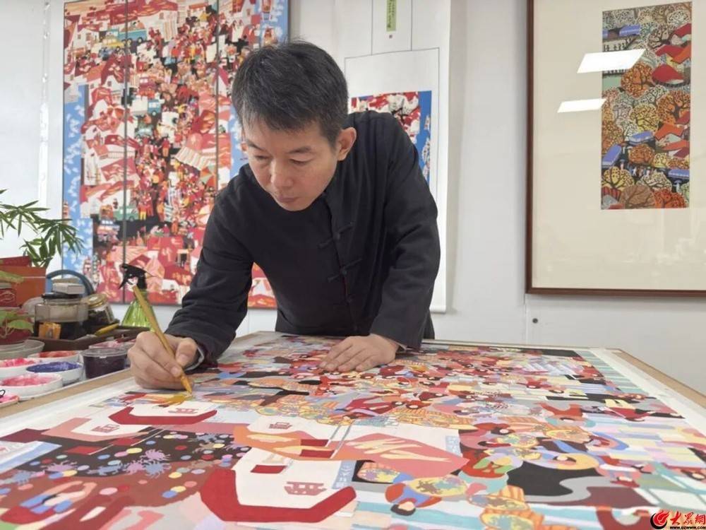 “西海岸是我的第二故乡,我要用年画记录它的每一次成长。”久居青岛西海岸新区的陈知保,对这片土地充满深情。他始终坚持用作品记录城市发展的点点滴滴。从美丽乡村建设到渔港升级改造,从生态保护成果到市民幸福生活,这些时代印记都被他定格在画布上。